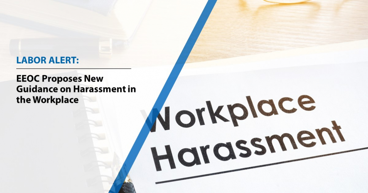 On September 29, the U.S. Equal Employment Opportunity Commission (EEOC) issued its proposed “Enforcement Guidance on Harassment in the Workplace.” The proposed guidance is available for review online, and the public is invited to submit comments until November 1. The guidance does not reflect a substantive change in current law and standards but seeks to update EEOC guidance based on current case law and the implication of new developments such as social media and other online tools. It also provides guidance for how the EEOC will interpret the law’s application in certain circumstances.